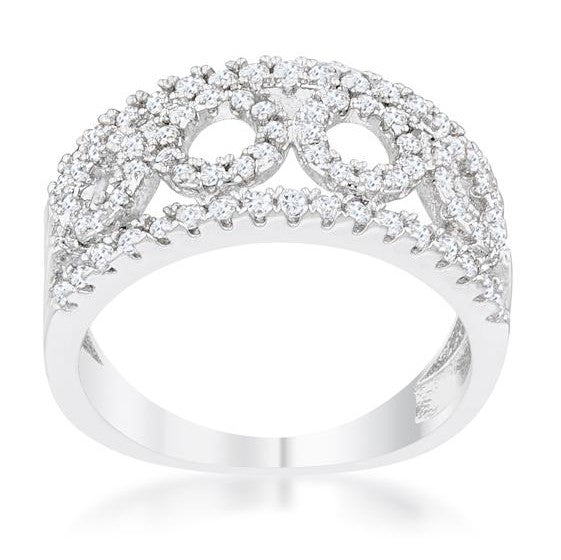 Regular price $ 45.95Sale price $ 45.95 Regular priceUnit price / perChristina cubic zirconia contemporary wide band fashion ring. An open ring accented with clear stones in a contemporary design, giving off the look of a double...