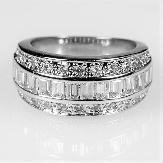Regular price $ 51.95Sale price $ 51.95 Regular priceUnit price / perNoni 3 row round and emerald cubic zirconia channel set band ring. A 3 rows of round and emerald 5 carat cubic zirconia creates this wide band...