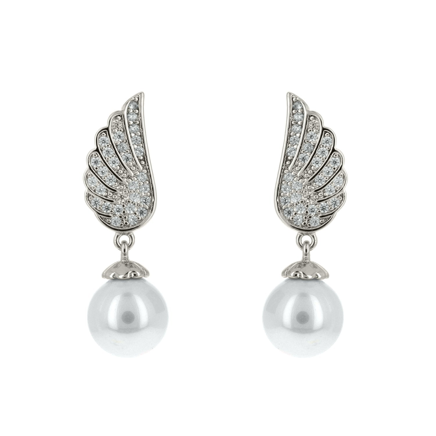 Jessa CZ Wings Pearl Drop Silver Earrings