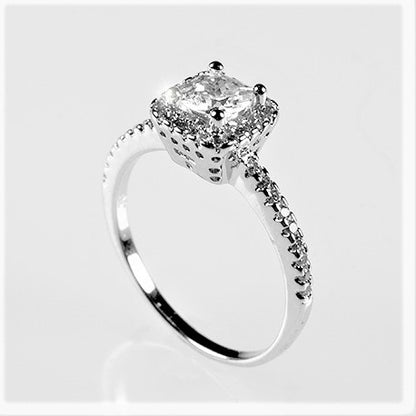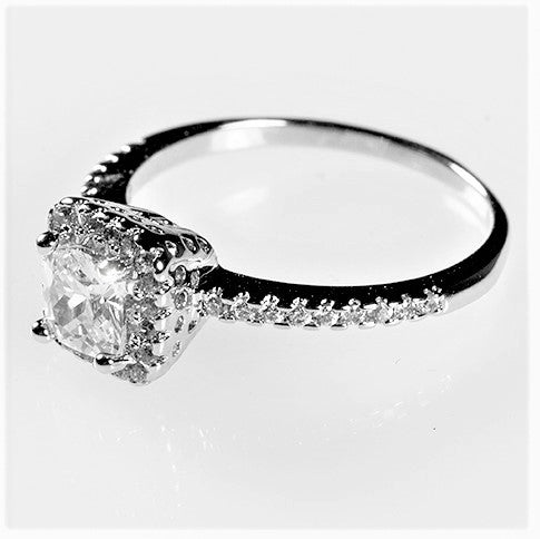 Ada 5mm princess 0.6ct cubic zirconia halo silver ring.