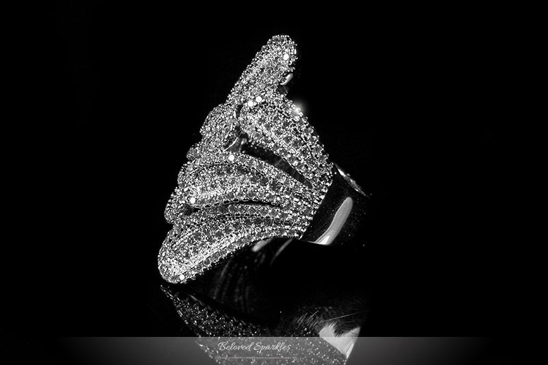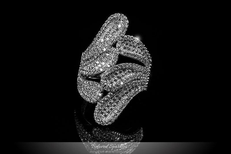 Lisha Contemporary Feather Fashion Cocktail Cubic Zirconia Ring