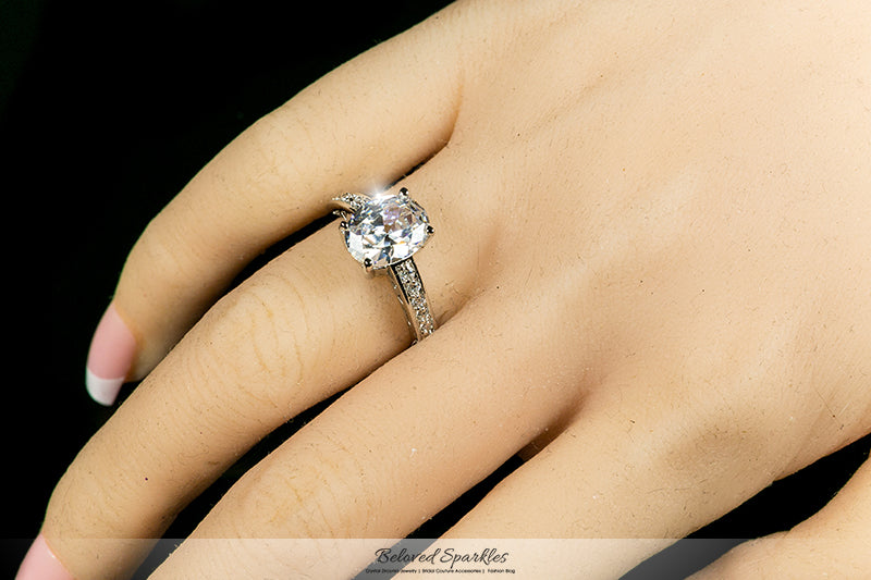 Evelina 10x8mm Oval Ruby CZ Ring | 3ct | Sterling Silver