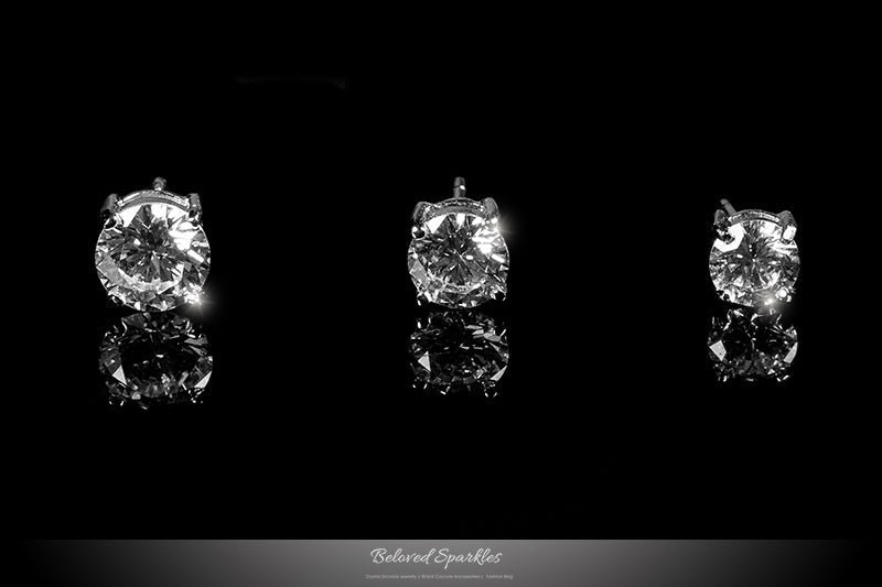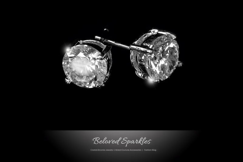 A classic 5mm round cut 0.5 carat cubic zirconia handset prong finish on .925 sterling silver rhodium plated finish.