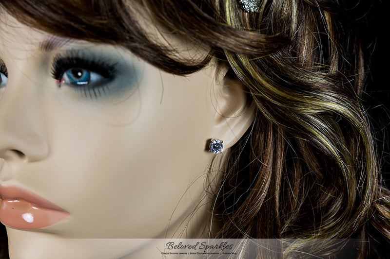 Haley 7mm round 1.3 carat cubic zirconia 925 sterling silver stud earrings.