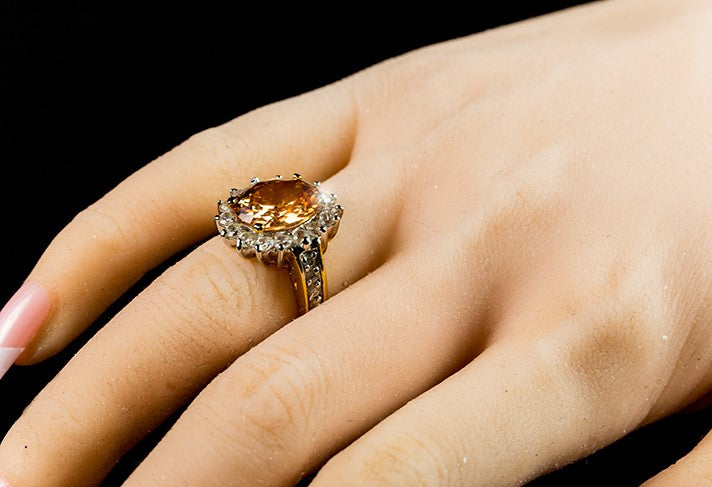 Kate 12x10mm oval sapphire blue or citrine champagne 5.5ct cz engagement ring.