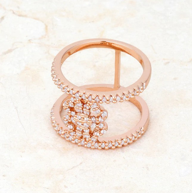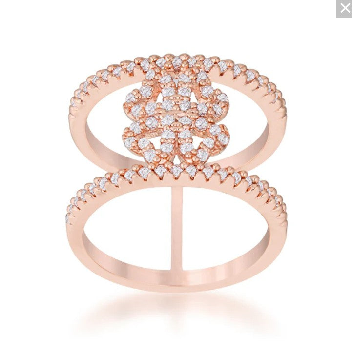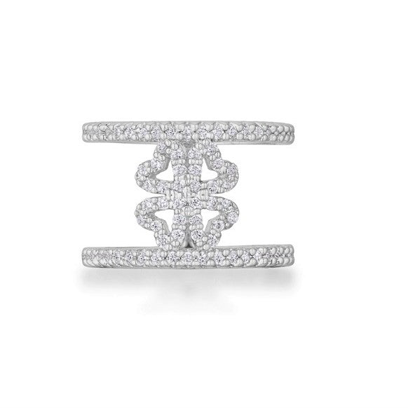 Clear cubic zirconia accent this silhouette of a delicate clover wrap ring.
