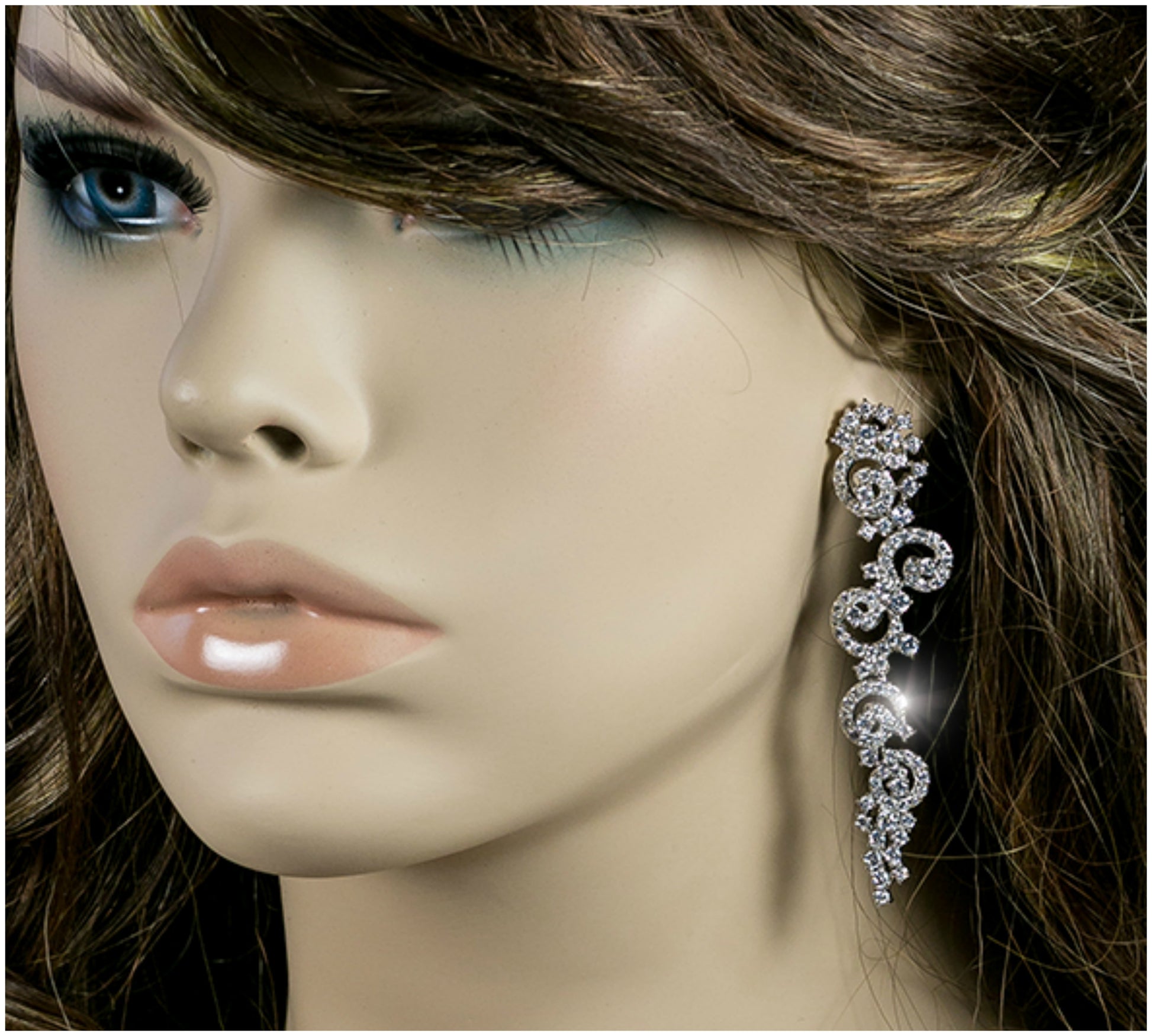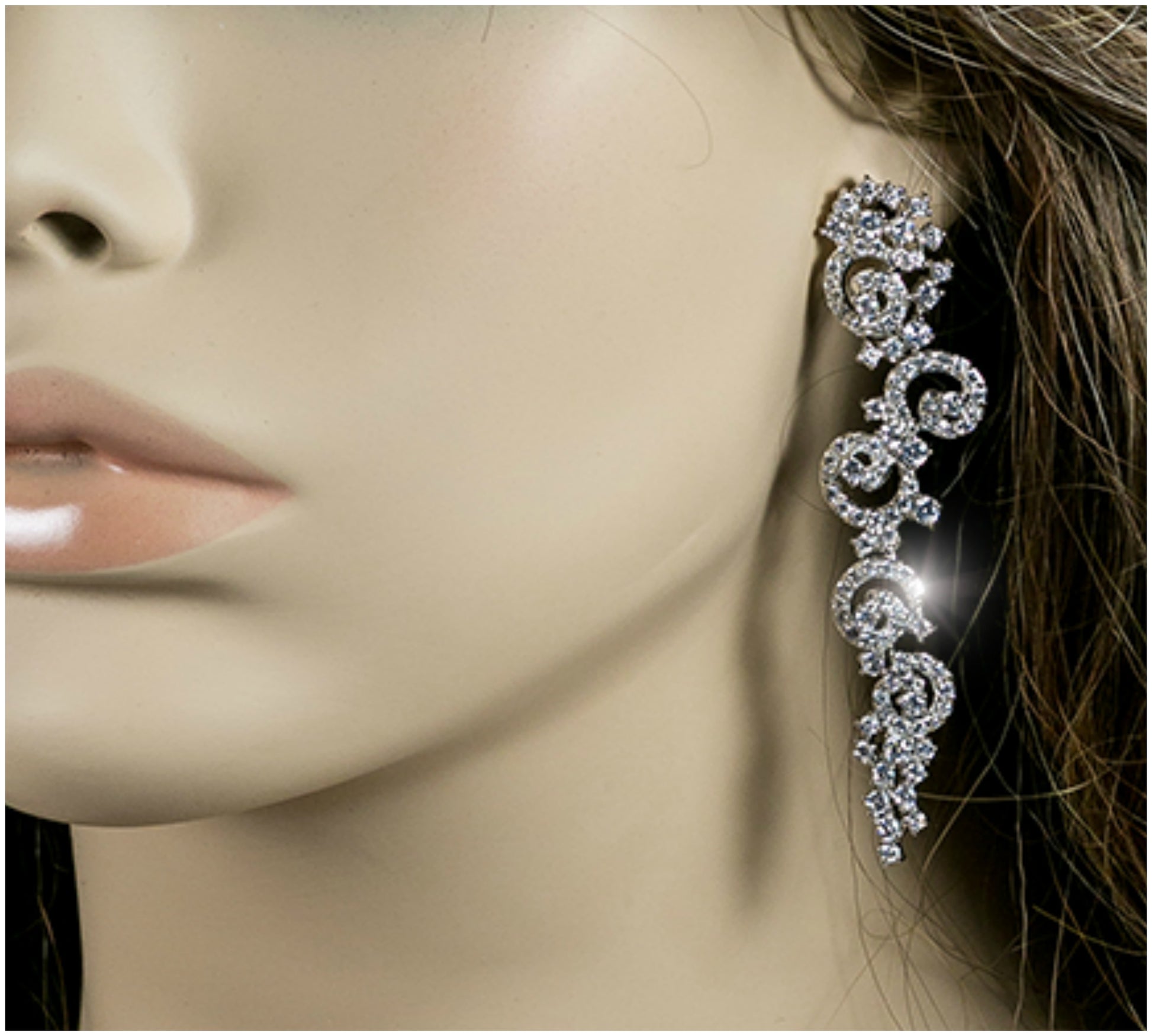 A cluster of cubic zirconia accents this romantic swirls linear chandelier statement earrings.  This exquisite piece is gorgeous with modern vintage vibe.